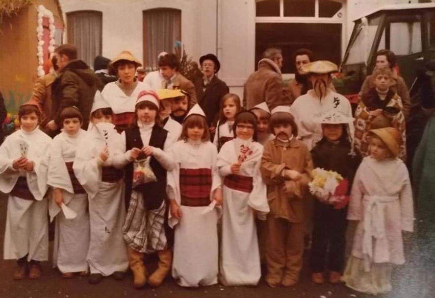 Le premier concert de Noël de la chorale a eu lieu à Carlsbourg le 20 décembre 1981 avec les six chorales de l'entité de Paliseul. Le 27, le même concert a été donné à Jéhonville. Pour son deuxième concert, le 18 décembre 1983, la chorale a invité le trompettiste Gérard Adam. En 1984, pas de concert à Carlsbourg, mais nous avons été sollicités par Mogimont (si mes souvenirs sont bons). C'était le 16 décembre. Ensuite ce fut le 22 décembre 1985 et je pense que la photo date de cette année-là. Le dernier concert avec la chorale au complet s'est déroulé en décembre 1990. Après ça, les jeunes sont partis aux études supérieures ou se sont mariés et les effectifs se sont réduits à une quinzaine de personnes puis ont diminué encore au fil des années.