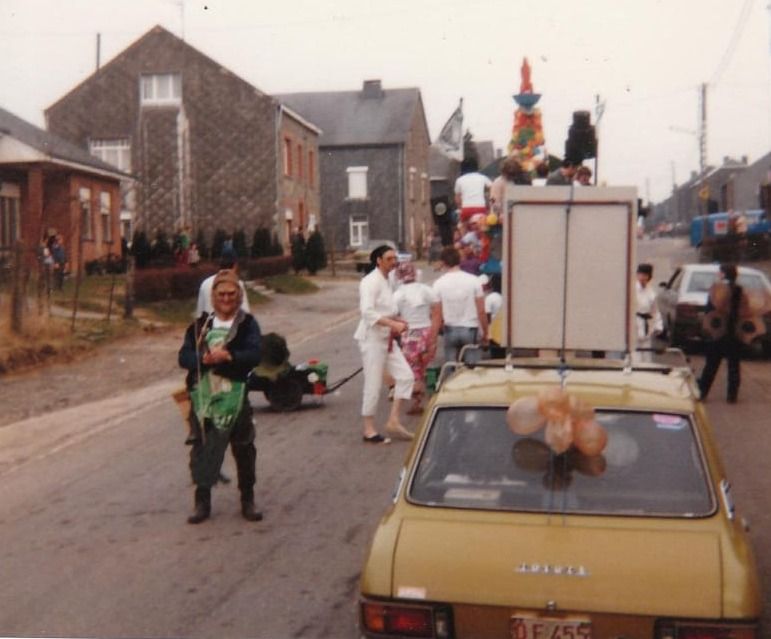 Il y a en fait Joseph Jacques, moi, Jean-Marie Balfroid, Raymonde, Annie et Sylvie Goosse, Solange Denis, Agnès Rézette, Donatienne Balfroid, Marie-Josée Jaumotte, (?) Noiret et Alfred Rézette (caché derrière lui, il y a encore quelqu'un qu'on ne peut reconnaître).